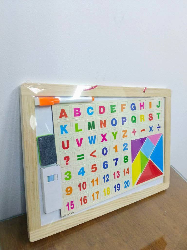 👉 ১টি ডাবল সাইড বোর্ড, ম্যাগনেটিক কাঠের বিভিন্ন বর্ণ, চক, ১টা মার্কার, ডাস্টার ।