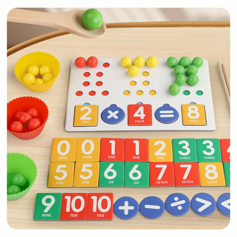 Educational Number Matching Toy Wooden Clip Beads Game Counting Toy for Kids